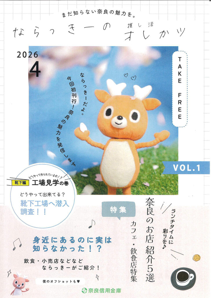 奈良信用金庫の発行する冊子 2026・4まだ知らない奈良の魅力を。「ならっきーのオしかツ」でご紹介いただきました。取材ありがとうございます。
